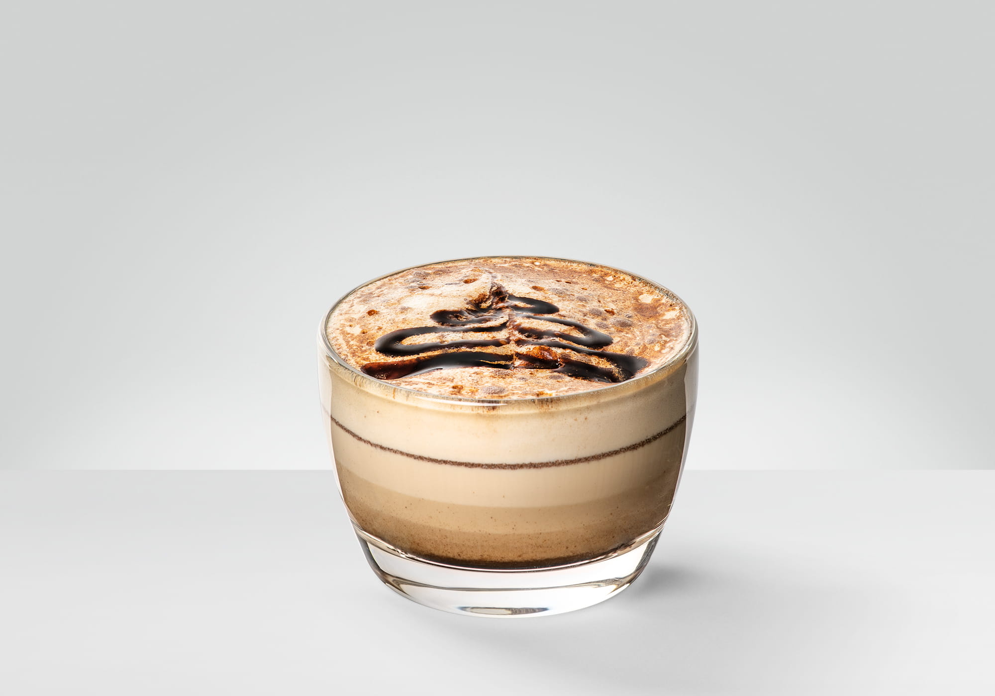 Finish the flat white with a festive chocolate sauce decoration (try a Christmas tree or star).