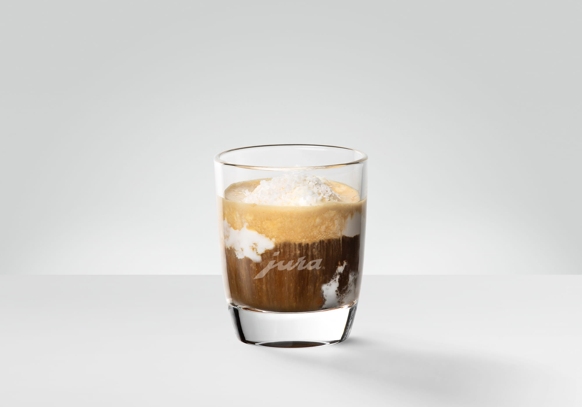 Decorate the espresso with a little toasted grated coconut.